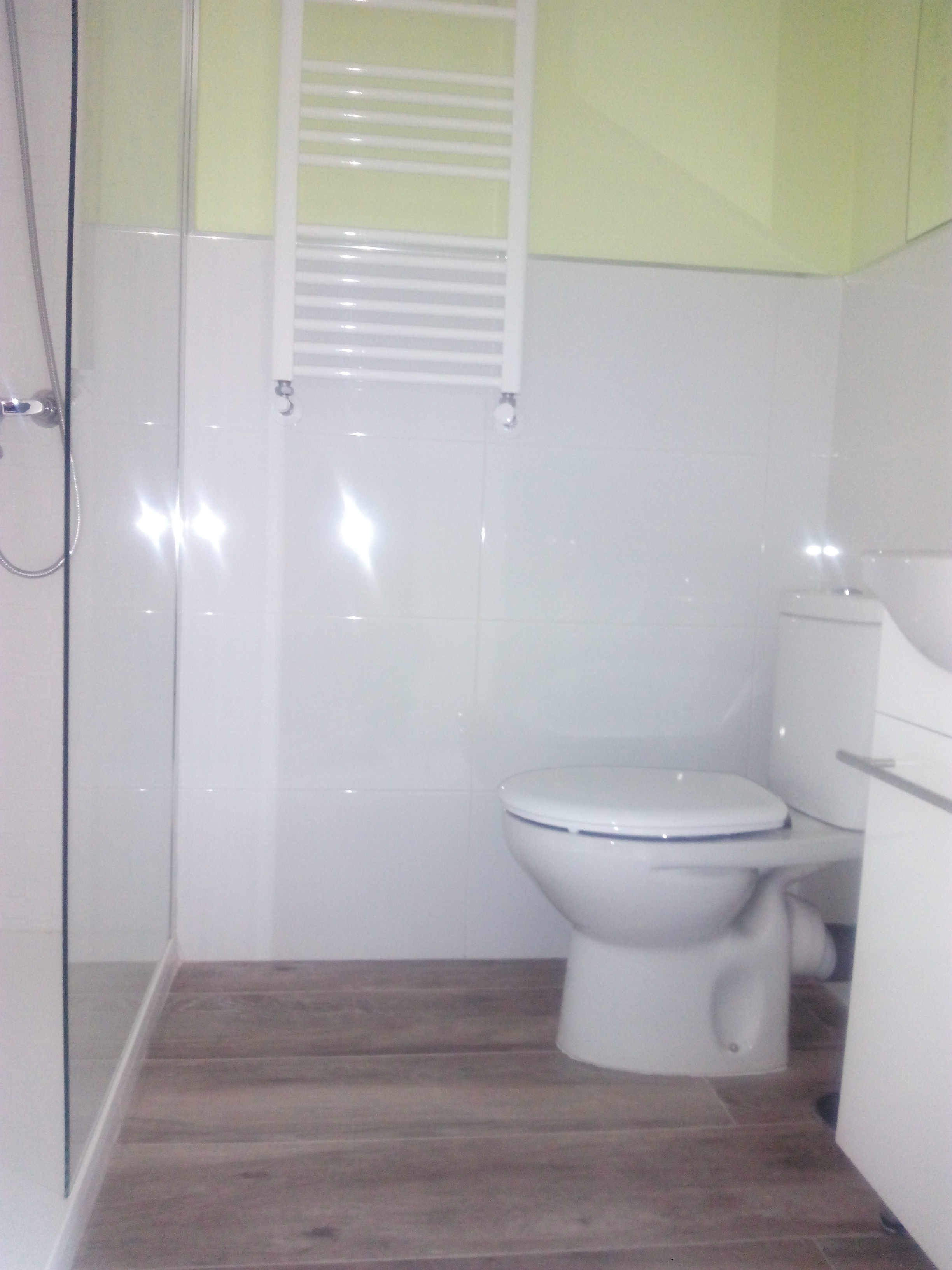 Ya que alicatamos hasta media altura, aprovechamos para pintar ambos baños dando les un toque de color y alegría.